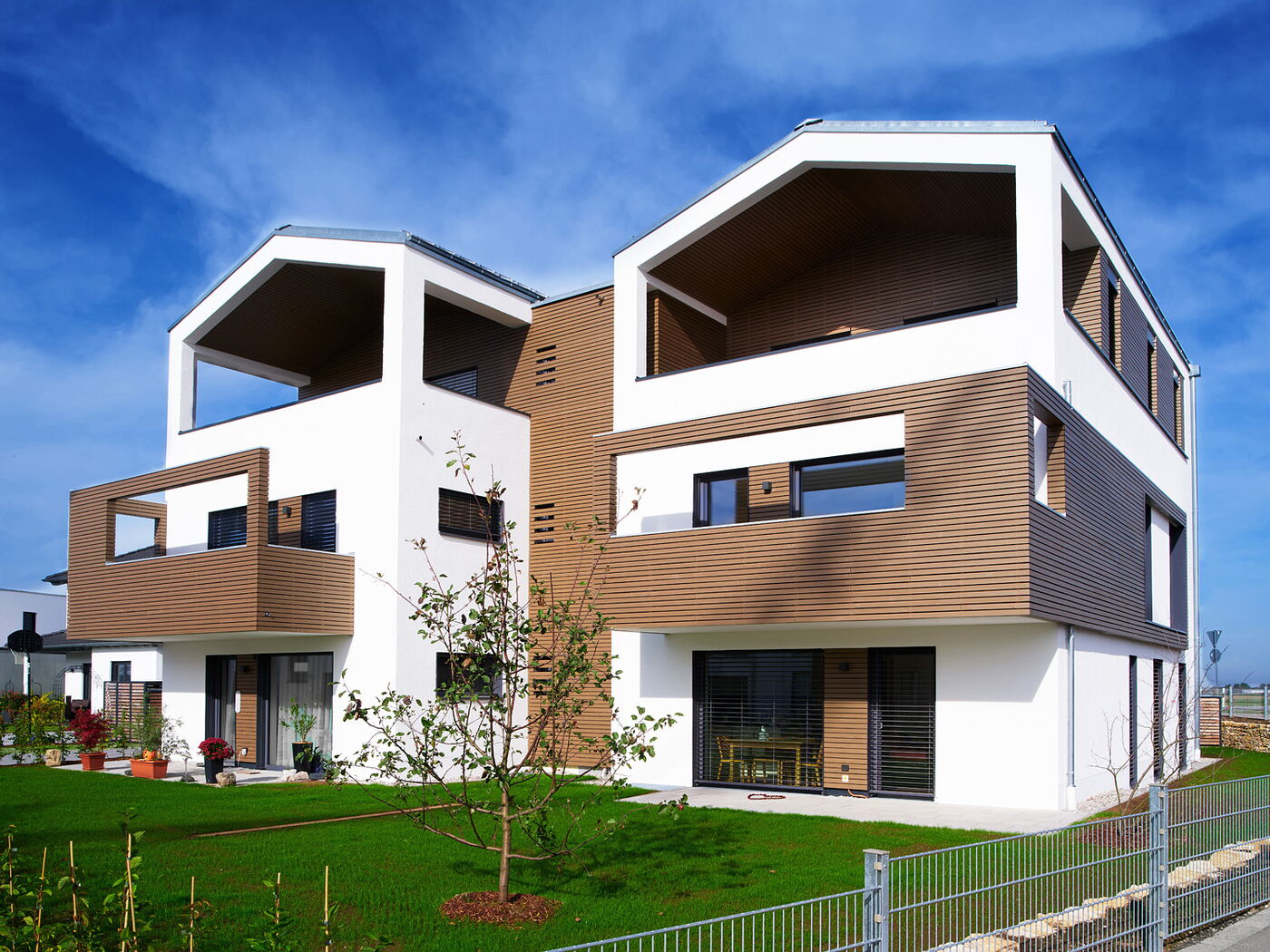 Es wird viel Wert darauf gelegt, dass kostenoptimiertes Bauen dennoch eine architektonische Haltung einnimmt und bautechnische Qualitäten zur Ausführung kommen. So werden die Gebäude massiv errichtet, ohne Wärmedämmverbundsystem, um auch dauerhaft ein gutes Innenraumklima durch einen diffusionsoffenen Fassadenaufbau zu ermöglichen. Sichtbetonflächen im Innenraum sorgen für einen Kontrast zu den verputzten Wohnungen und sind durch Ihre Vorfertigung gleichermaßen kostengünstig in der Verlegung bei bereits fertiger Oberfläche.